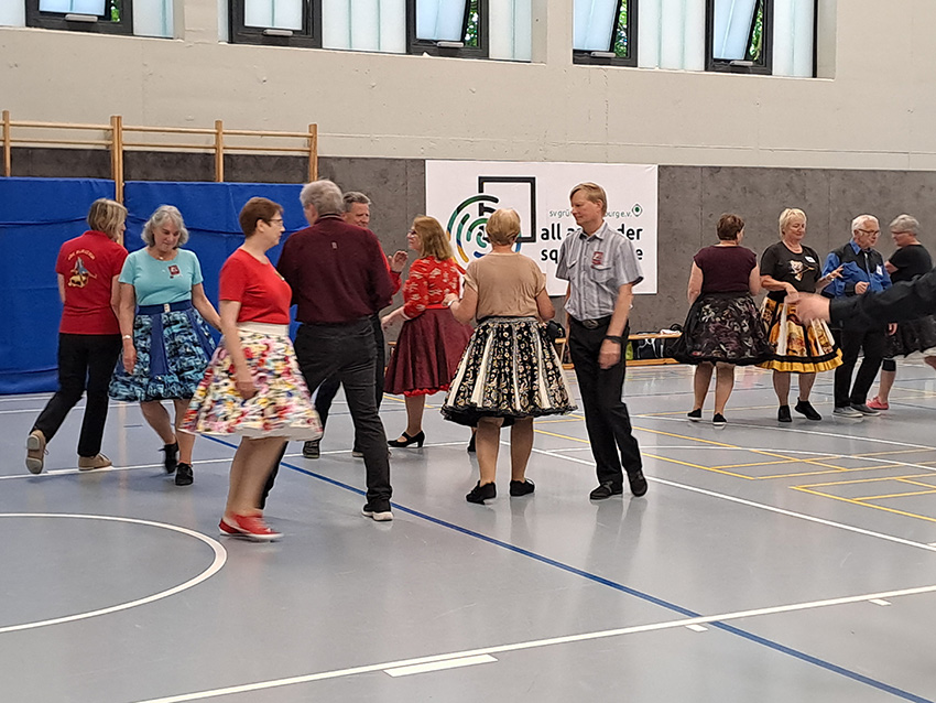 Square Dance, mit Freunden und Gästen sportlich zu tanzen Körper und Gehirn fit zu halten und einen Abend mit viel Spaß und Fröhlichkeit zu erleben – wir genießen es jedes Mal!